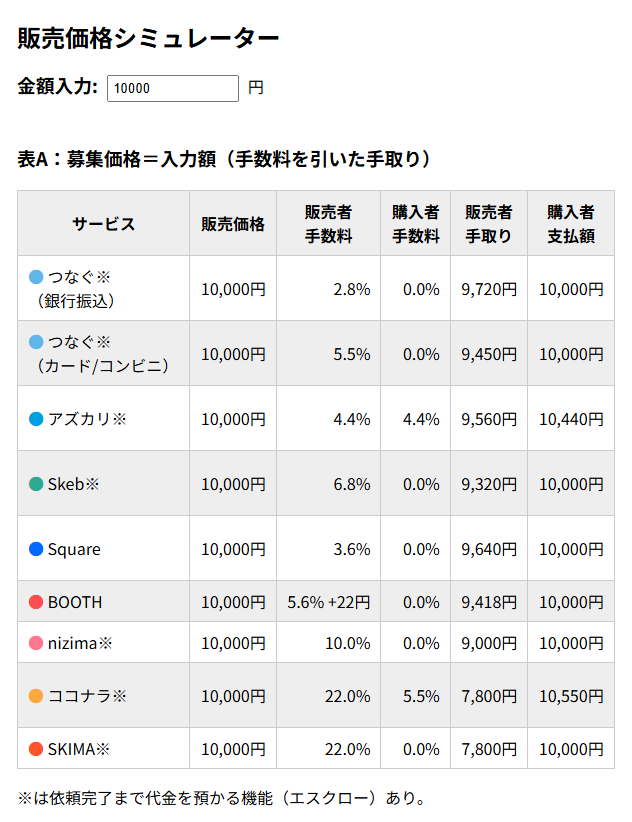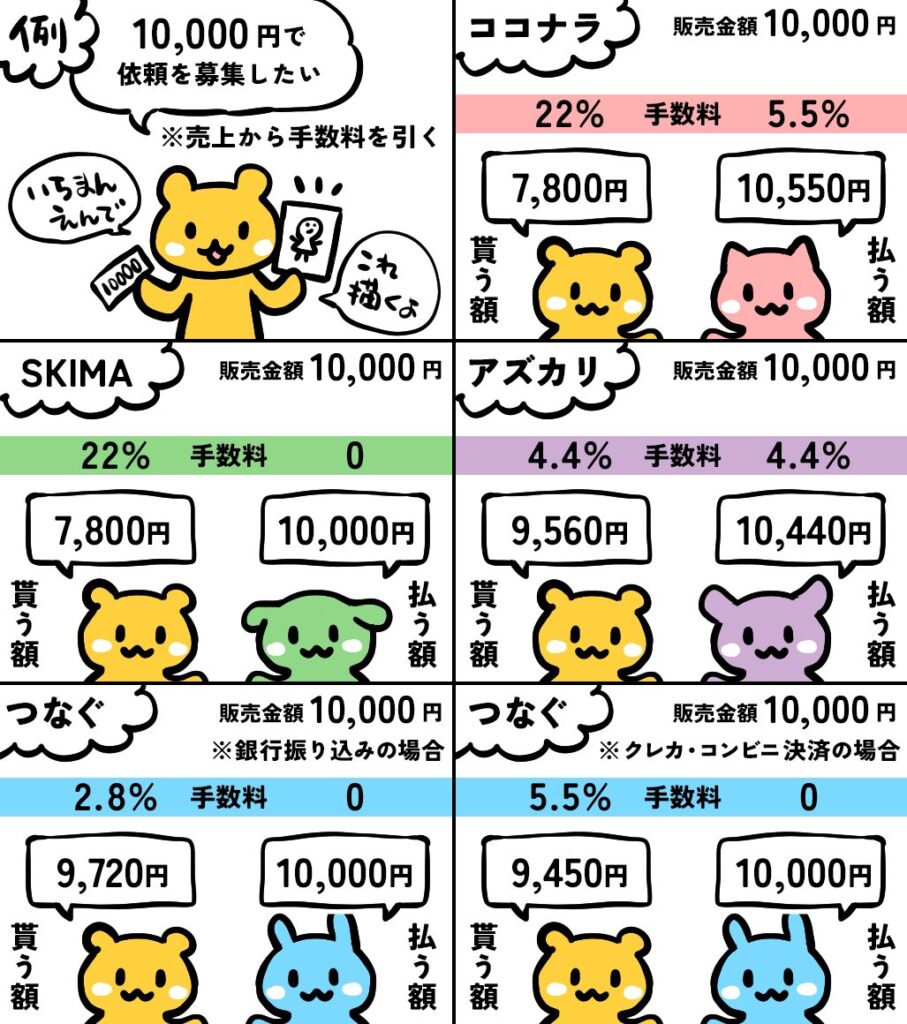 便利かもしれないやつコミッションサイトを介して取引を行った場合の、手数料についてまとめました。